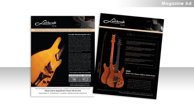 Comments: Designed with the goal of making these incredible guitars the focal point while showing the craftsmanship, attention to detail and proprietary components. Subtile image in header communicates that the instruments are made by hand by a master luthier. |