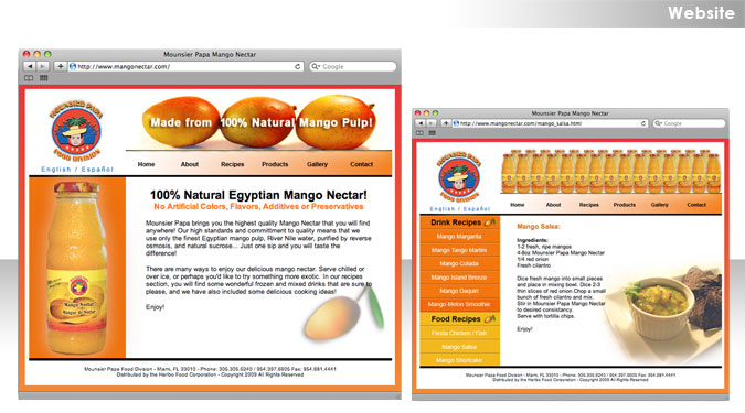 Comments: The project goal was to create a website that would support the company’s sales efforts while maintaining a bright and fun image to reflect this tropical beverage. I developed food and beverage recipes using their mango nectar to offer their customers more ways to enjoy the product (and consume more of it!) Site was built with both English and Spanish versions, and offers product info, photo gallery and video section. Later expanded to include an e-commerce section to place orders and process payment online. |