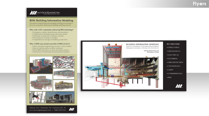 Comments: Client needed a flyer to promote their new BIM (Building Information Modeling) service, a new technology in the engineering industry. Flyer explains the benefits of using this technology and helps positions the firm as an industry leading provider of this service. |