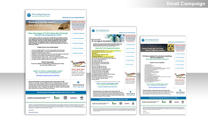 Comments: Email campaign was developed to reach customers on a weekly basis with specials, rate updates, and value message. Email was designed to point to areas on the website that contained product information and industry resources. This campaign resulted in dramatic response from existing customers and also allowed the sales team to reconnect and repair relationships with past customers. |