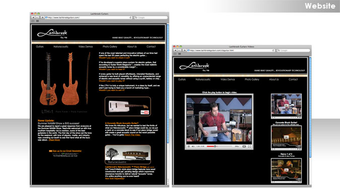 Comments: Website designed to target professional musicians and guitar collectors, by using great photography of the products, video demos by professional musicians, and testimonials from happy customers. |